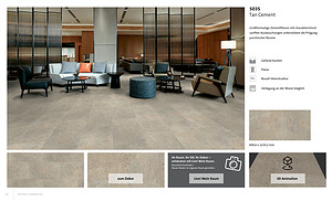Großformatige Zementfliesen mit charakteristisch sanften Auswaschungen unterstützen die Prägung puristischer Räume.